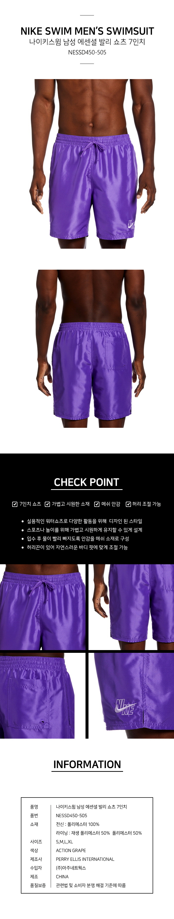 (롯데백화점)남자래쉬가드 뉴 에센셜 풀 메시 라이너 7인치 발리 쇼츠 NESSD450-505