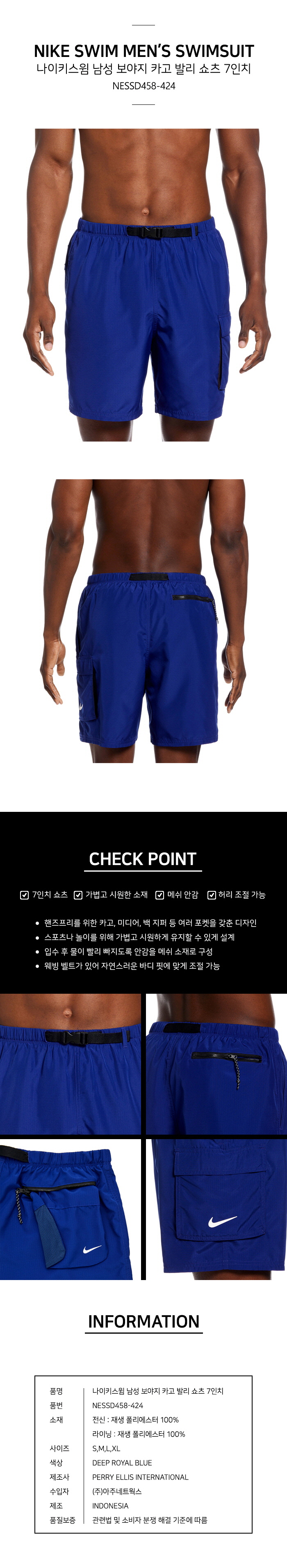 (롯데백화점)남자래쉬가드 벨티드 패커블 7인치 발리숏 NESSD458-424