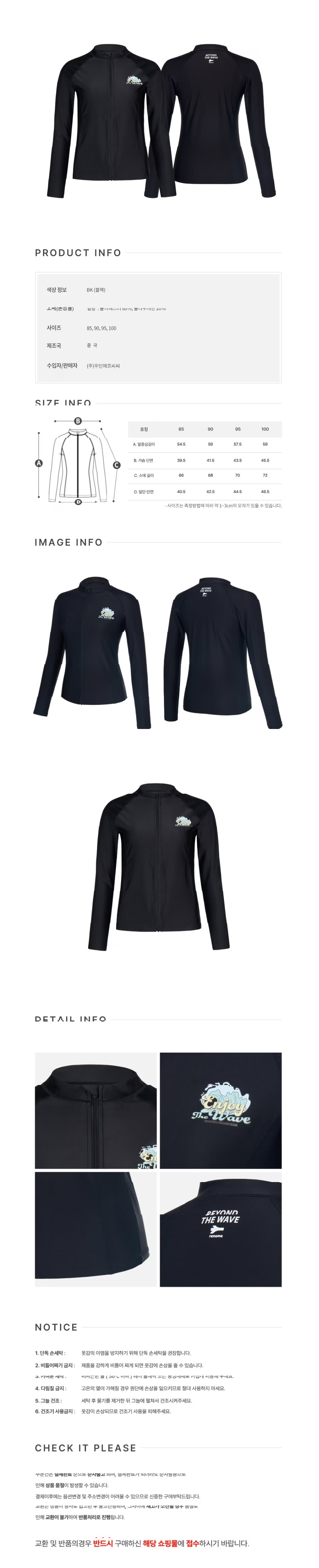 (신세계하남점)비치백 지퍼백 폴리백 3종 무상증정여성 인조이 집업 래쉬가드 상의 블랙 RN-CS2F951-BK