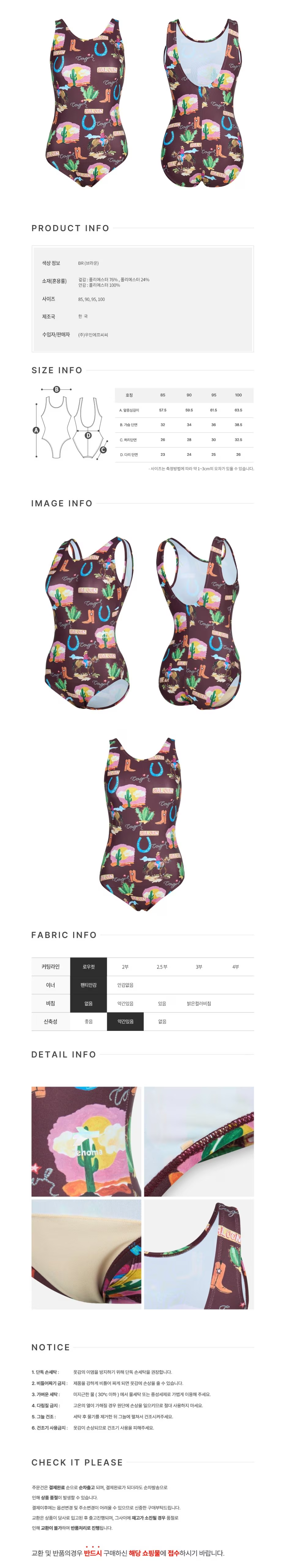 (신세계하남점)비치백 지퍼백 폴리백 브라캡 4종 무상증정여성 웨스턴 U백원피스수영복 브라운 RN-LS...