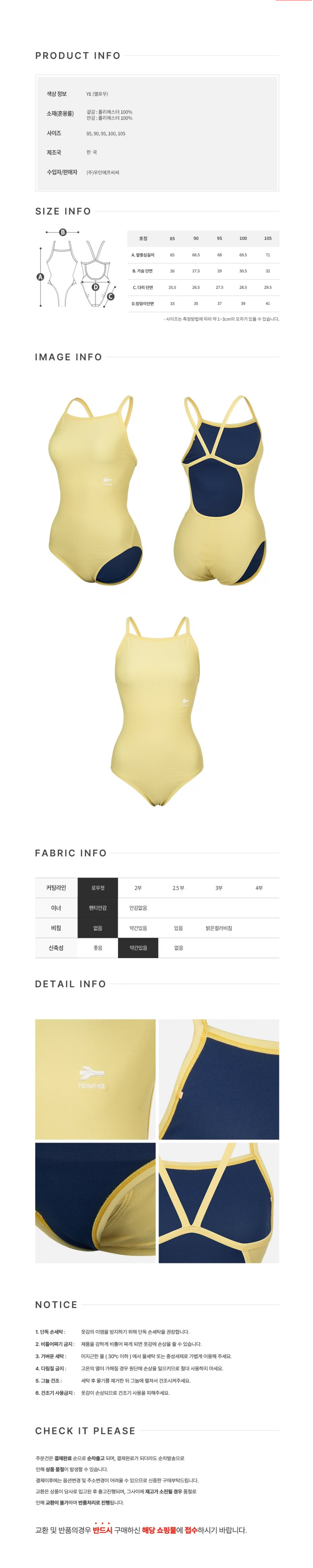 (신세계하남점) 폴리백 브라캡 증정여성 탄탄이 싱글스트랩 원피스수영복 옐로우 RN-LS2F805-YE