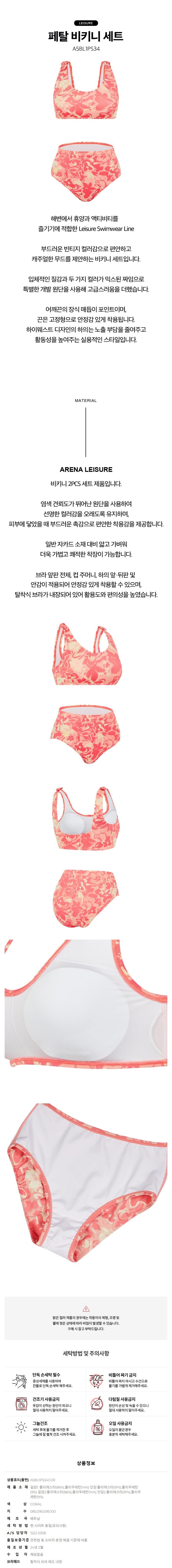 (대전신세계)여성 비치세트 페탈 비키니 세트 (A5BL1PS34COR)(브라캡내장형)