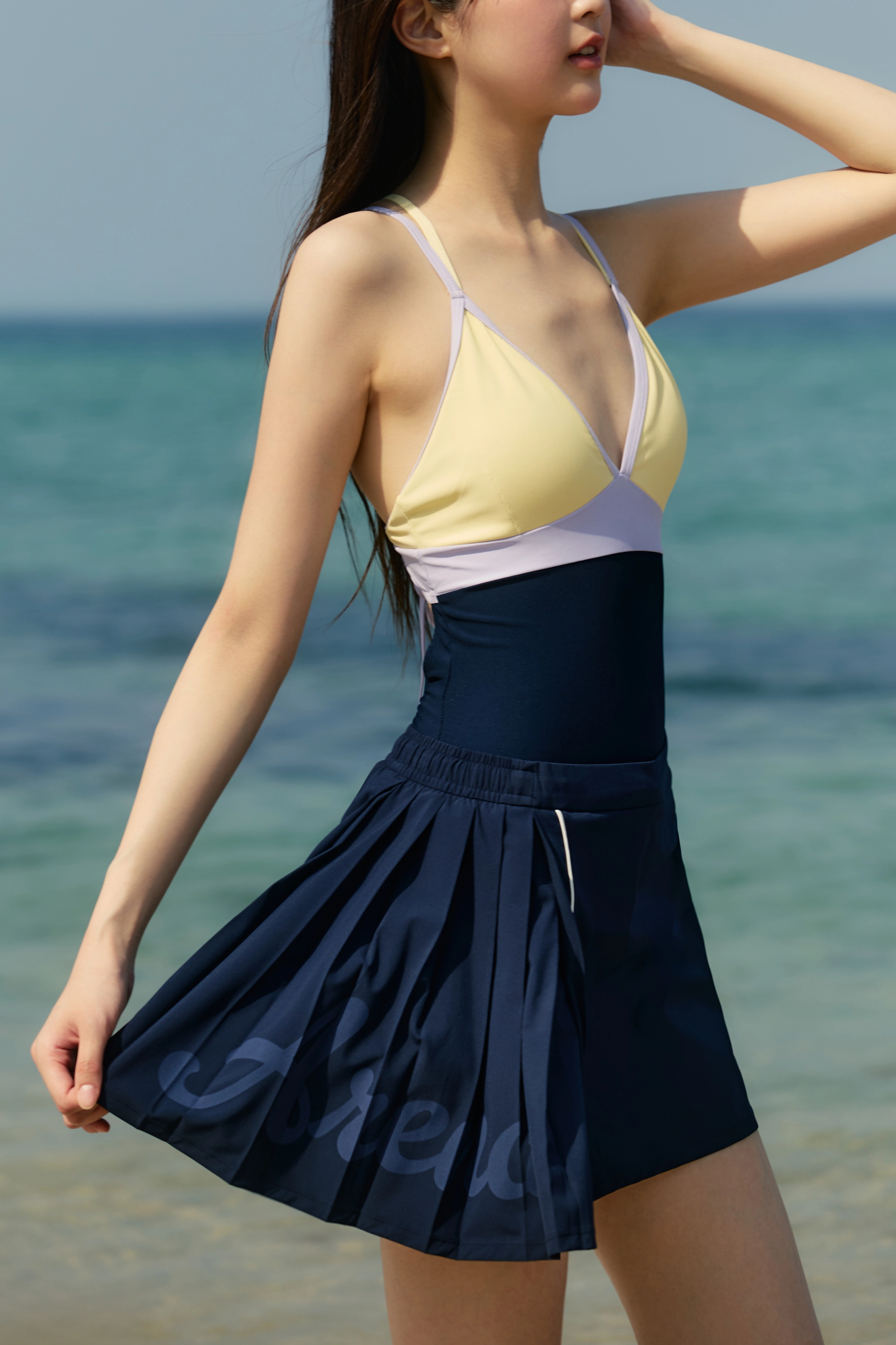 겉감:폴리에스터(85%),폴리우레탄(15%) 안감:폴리에스터(91%),폴리우레탄(9%) 배색:폴리에스터(85%),폴리우레탄(15%) 배색2:폴리에스터(82%),폴리우레탄(18%)