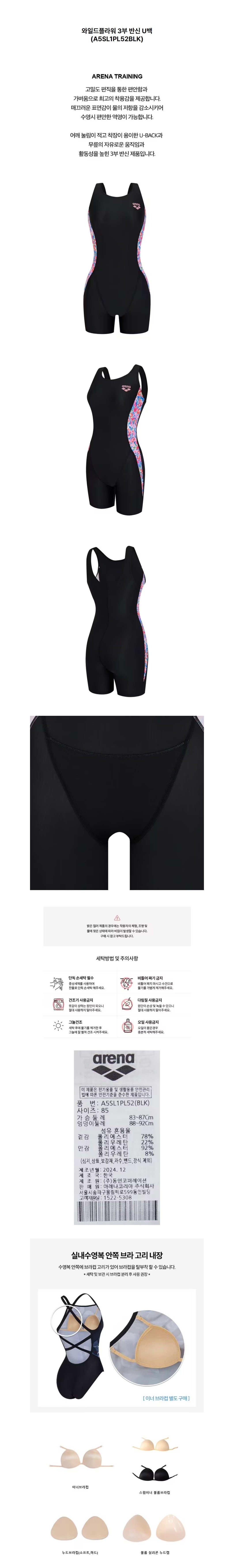 (대구신세계)여성 실내 와일드플라워 3부 반신 입기편한 U백 수영복(A5SL1PL52)BLK(브라캡별도)