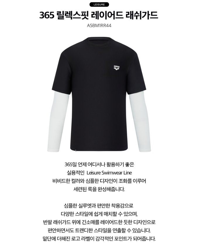(신세계하남점)아레나 남성 A5BM1RR44 레이어드 래쉬가드 365 릴렉스핏