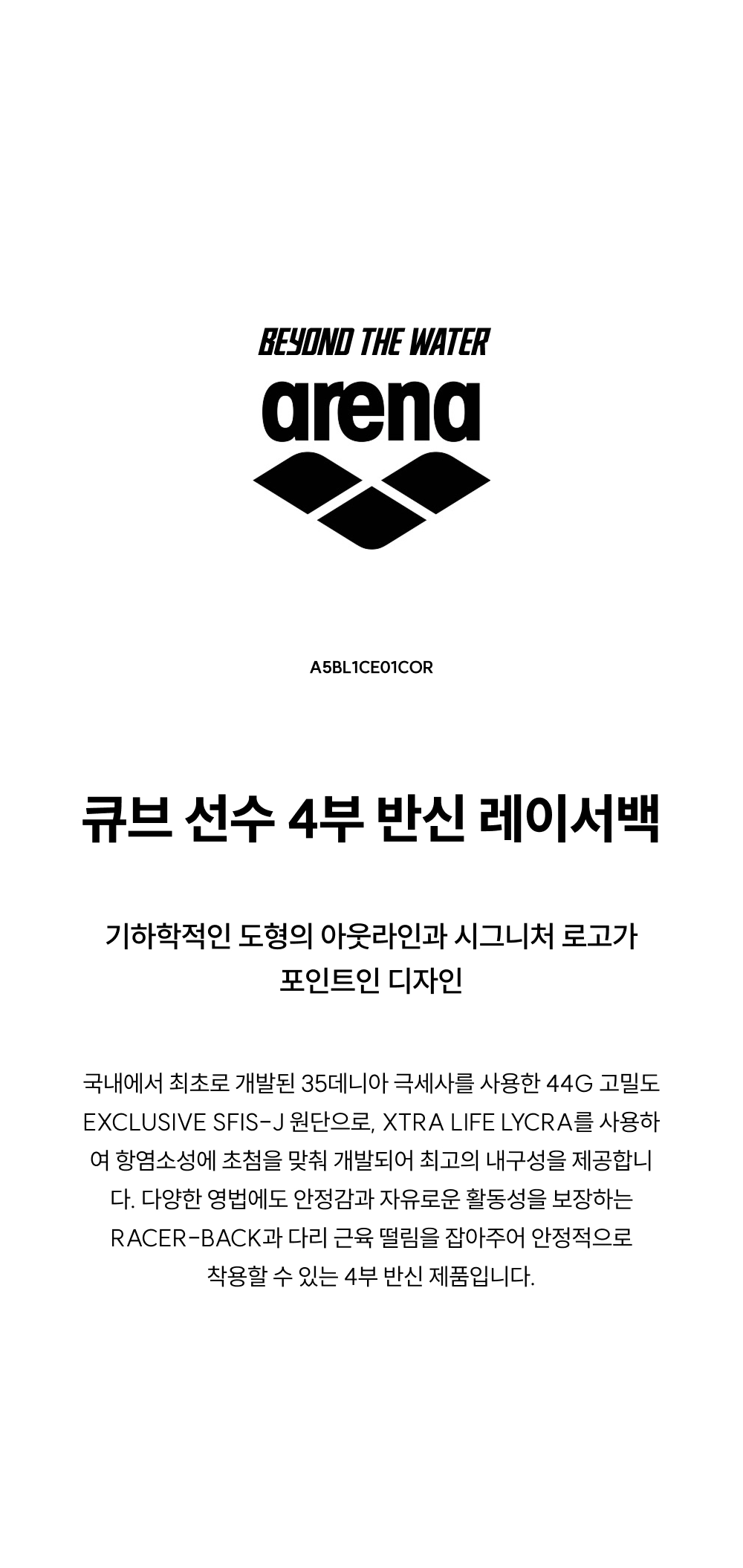 (신세계의정부점)아레나 큐브 선수 4부 반신 레이서백 A5BL1CE01 (GRNCOR) 브라컵별도구매