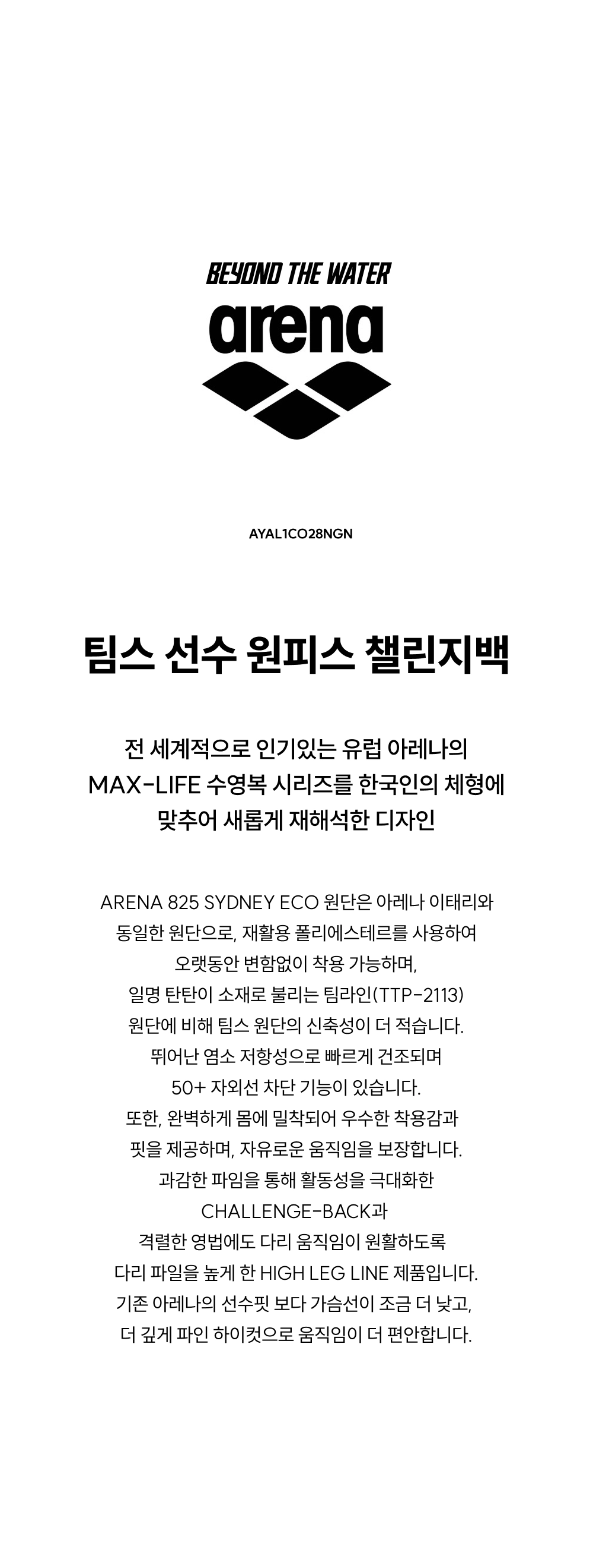 (신세계의정부점)아레나 팀스 선수 원피스 챌린지백 AYAL1CO28 ( NGN )브라캡 별도구매