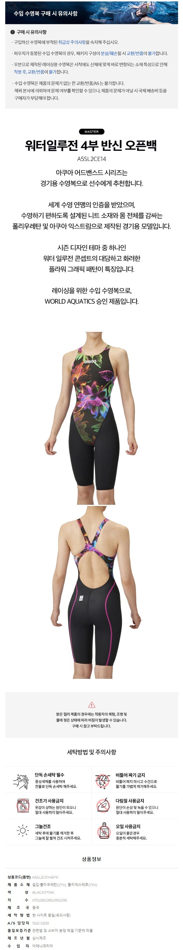 (대전신세계)WORLD AQUATICS인증 직수입 여성수영복 워터일루전 4부 반신 오픈백(A5SL2CE14BPK)(브라캡...