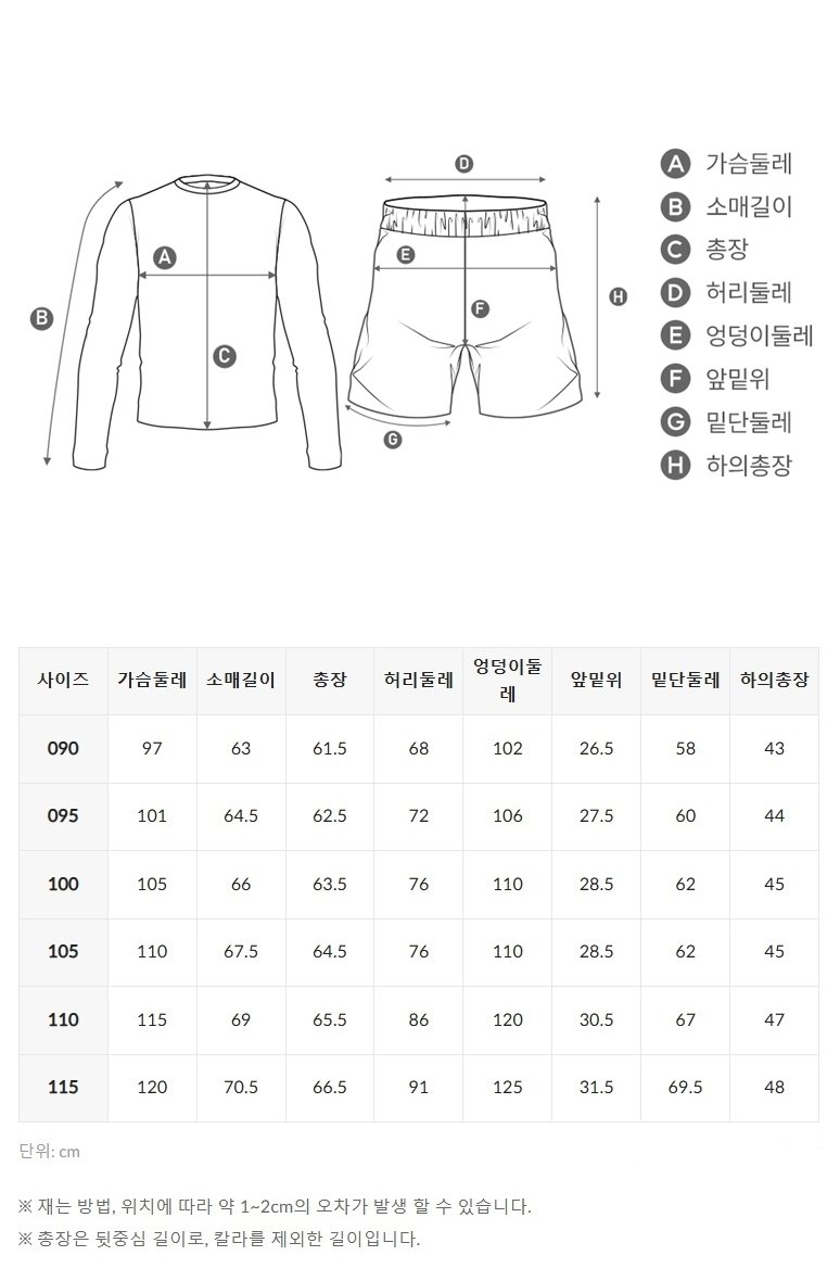 | 신체지수 | 가슴둘레 | 85 | 90 | 95 | 95 | 100 | |