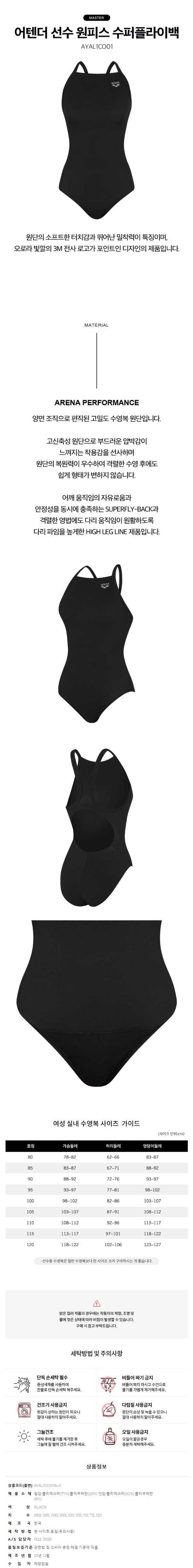 (대전신세계)선수 여성 실내수영복 어텐더 선수 원피스 수퍼플라이백 (AYAL1CO01BLK)(브라캡별도)