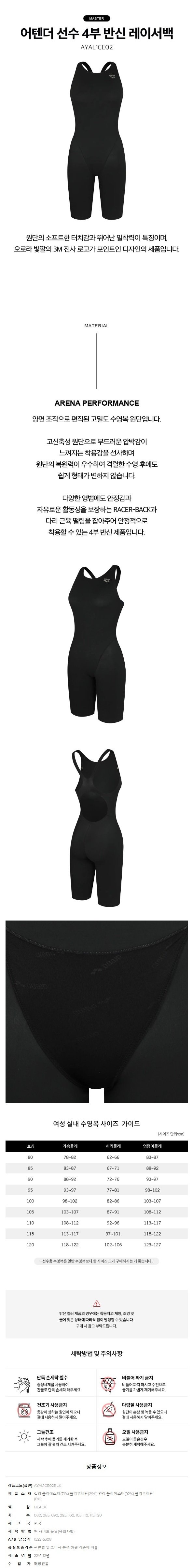 (대전신세계)선수 여성 실내수영복 어텐더 선수 4부 반신 레이서백 (AYAL1CE02BLK)(브라캡별도)
