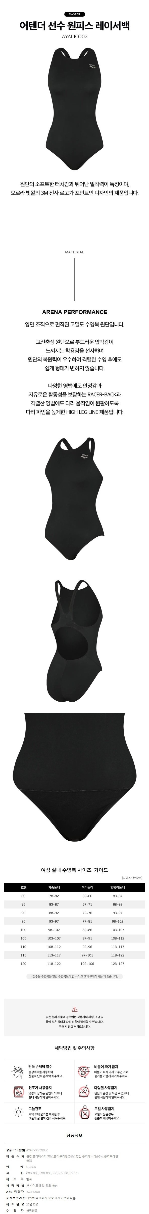 (대전신세계)선수 여성 실내수영복 어텐더 선수 원피스 레이서백 (AYAL1CO02BLK)(브라캡별도)