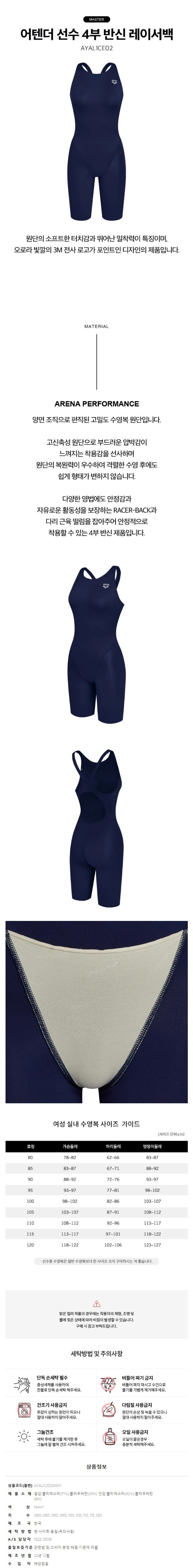 (대전신세계)선수 여성 실내수영복 어텐더 선수 4부 반신 레이서백 (AYAL1CE02NVY)(브라캡별도)