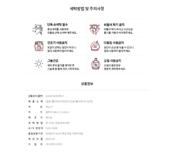• 상품 정보 문의 : 하남점 브랜드 매장 (03180721911)