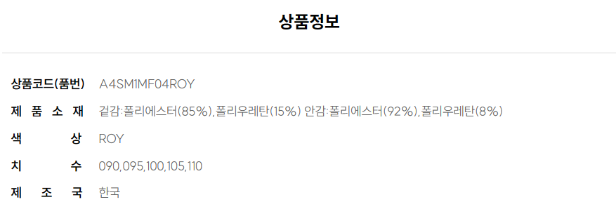 • 상품 정보 문의 : 천안아산점 브랜드 매장 (0416405653)
