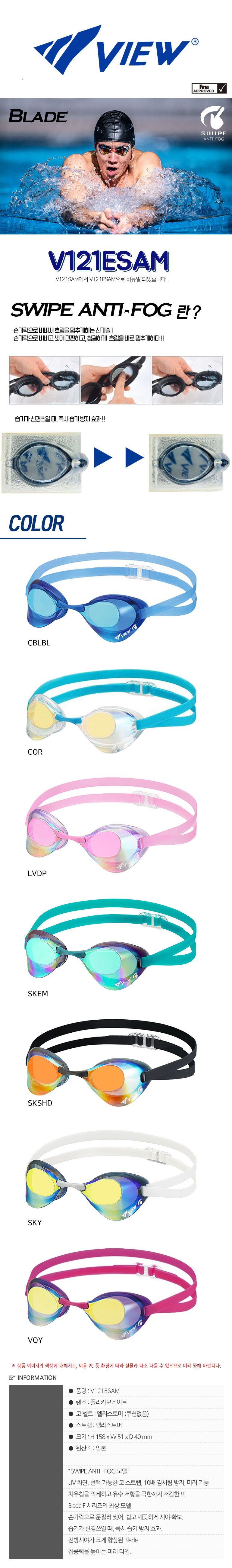 뷰 타바타 뷰 수경 VIEW 스와이프 안티포그 V121SAM V121ESAM