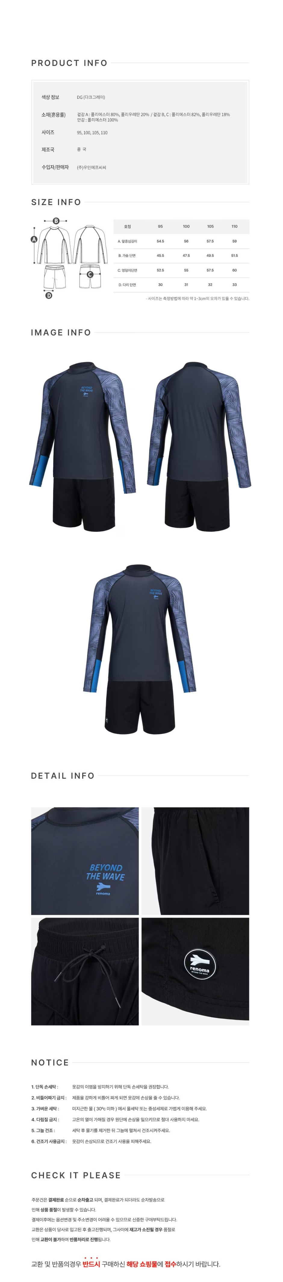 (신세계하남점)비치백 지퍼백 폴리백 3종 무상증정남성 야자수 래쉬가드 세트 다크그레이 RN-MS2F921-DG