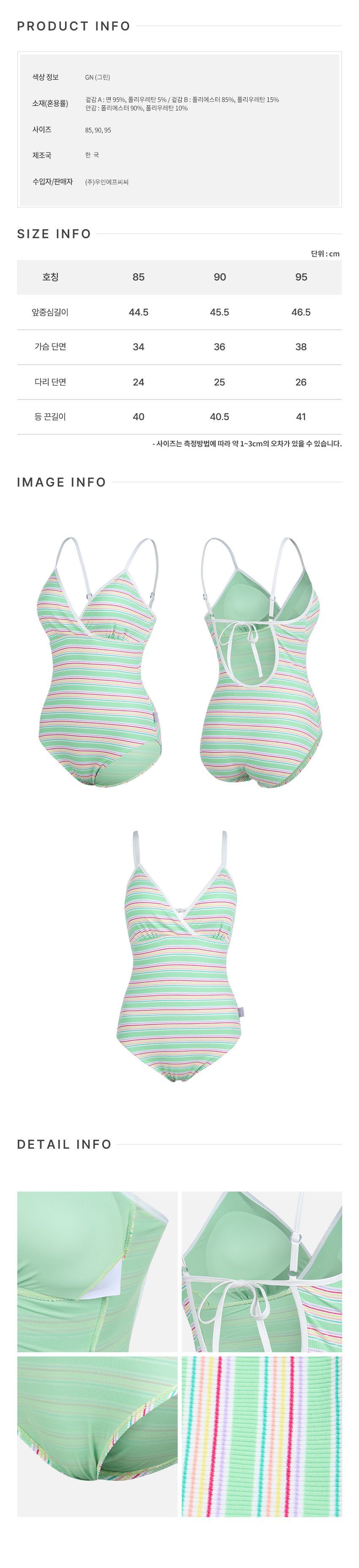 (신세계하남점)비치백 지퍼백 폴리백 3종 무상증정 여성 스트라이프 모노키니 그린 RN-LS2F914-GN