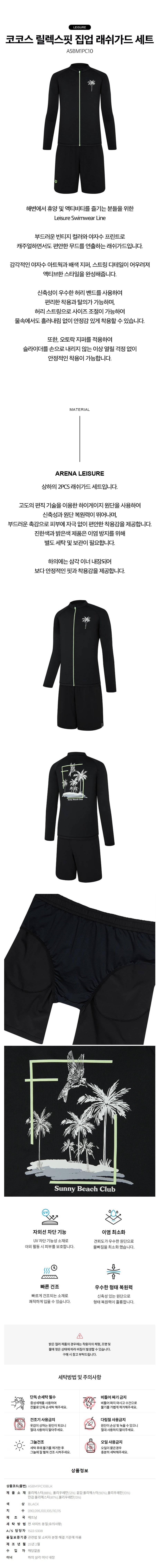 (대구신세계)남성 비치 코코스 릴렉스핏 집업 래쉬가드 세트 수영복(A5BM1PC10)BLK