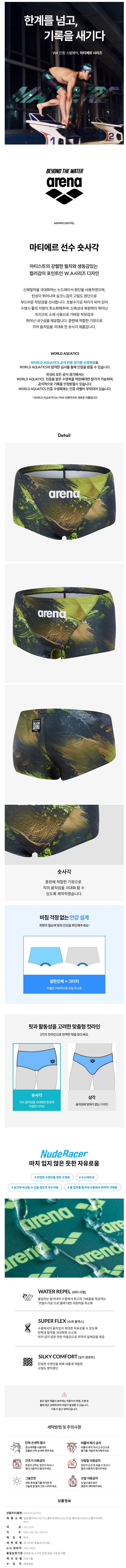 (대전신세계)WORLD AQUATICS 인증 남성 실내수영복 마티에르 선수 숏사각 (A5FM1CQ01YEL)