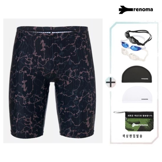 (롯데백화점)레노마 남성 4부 실내수영복+수경+수모 SET_ BK-MS2D804