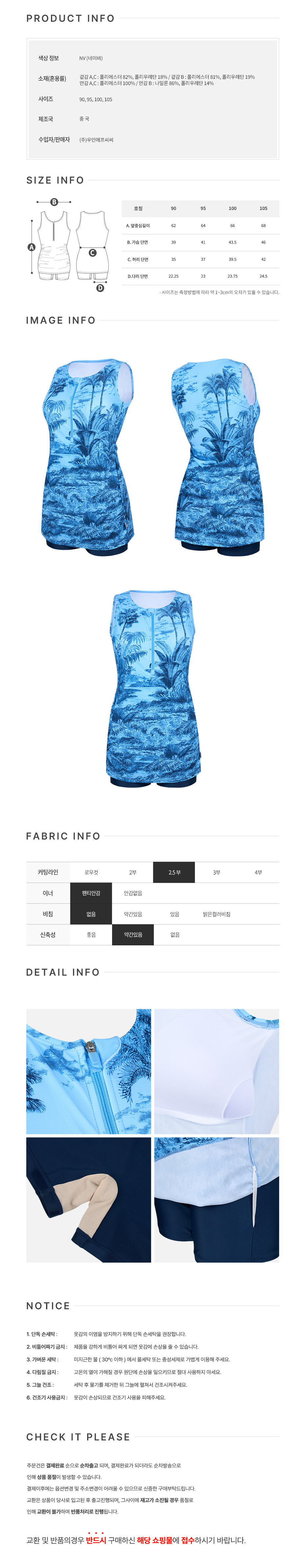 (신세계하남점)비치백 지퍼백 폴리백 사은품 증정여성야자수셔링 커버업 2.5부아쿠아수영복네이비 LS...