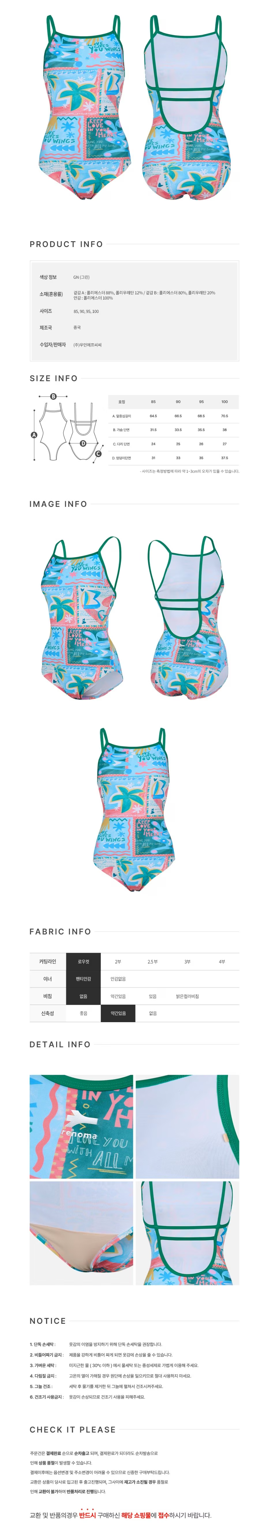 (신세계하남점)지퍼백 폴리백 브라캡 사은품 증정여성 키치야자수U백 스트랩 원피스수영복그린 RN-LF...