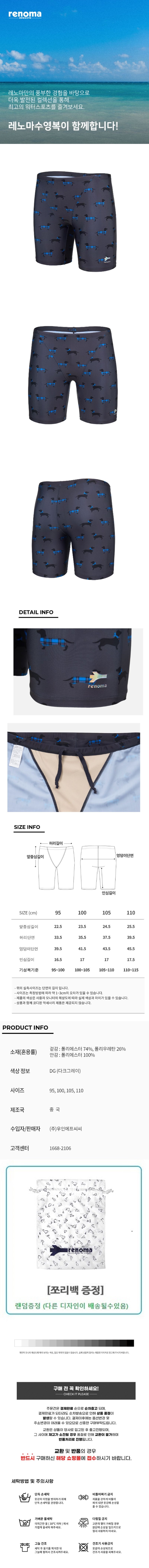 (신세계김해점)끈주머니증정 남성 3부 체크독 수영복/MF2E802-DG