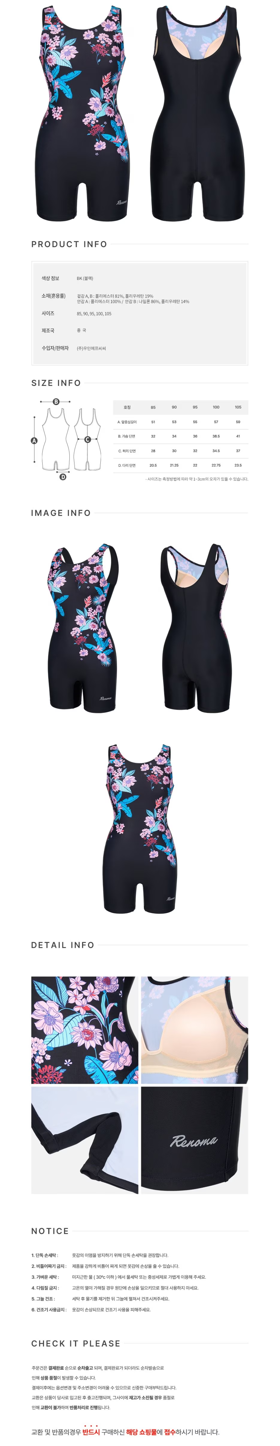 (신세계하남점)지퍼백 폴리백 증정여성 플라워 U백 3부 반신수영복 블랙 RN-LF2F861-BK