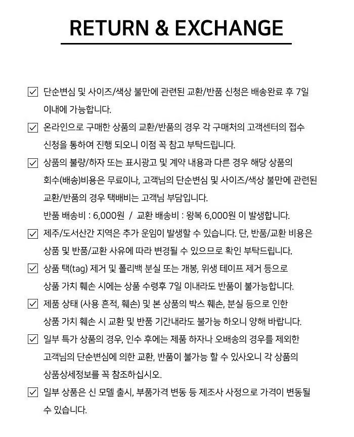 • 센텀시티/마산/광주신세계/김해/대구신세계/천안아산/대전신세계 상품은 다른 점포 상품과 별도로 배송되며, 교환/반품 시 비용은 별도로 부담하셔야 합니다.