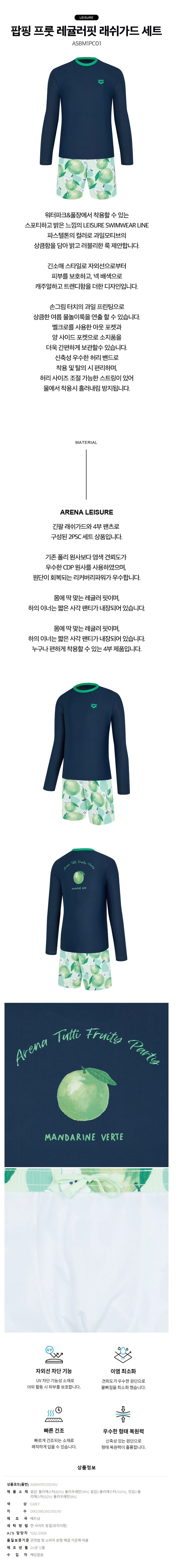 (대구신세계)남성 비치 레귤러핏 래쉬가드+4부팬츠 세트 수영복(팝핑프룻)(A5BM1PC01)DNV