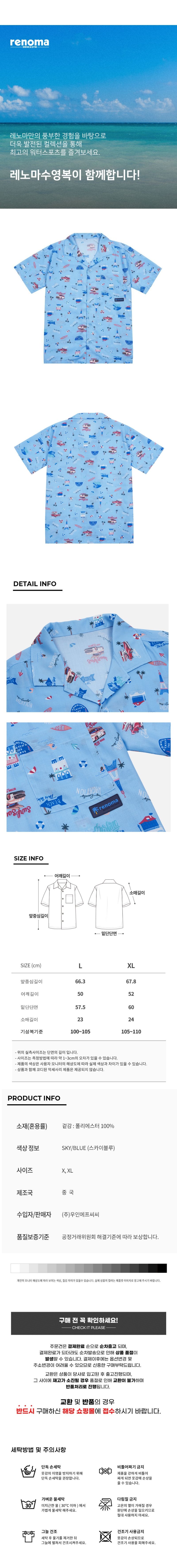 (신세계김해점)남성 오션 반팔 커버업셔츠 /TS2E302-SB