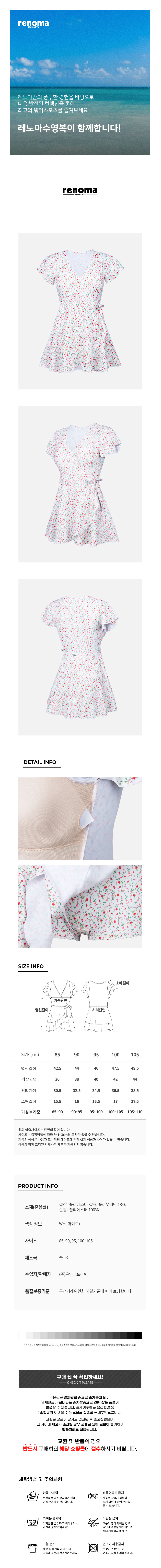 (신세계하남점)폴리백 증정 여성 셔링 플라워 모노키니 화이트 RN-LS2E874-WH
