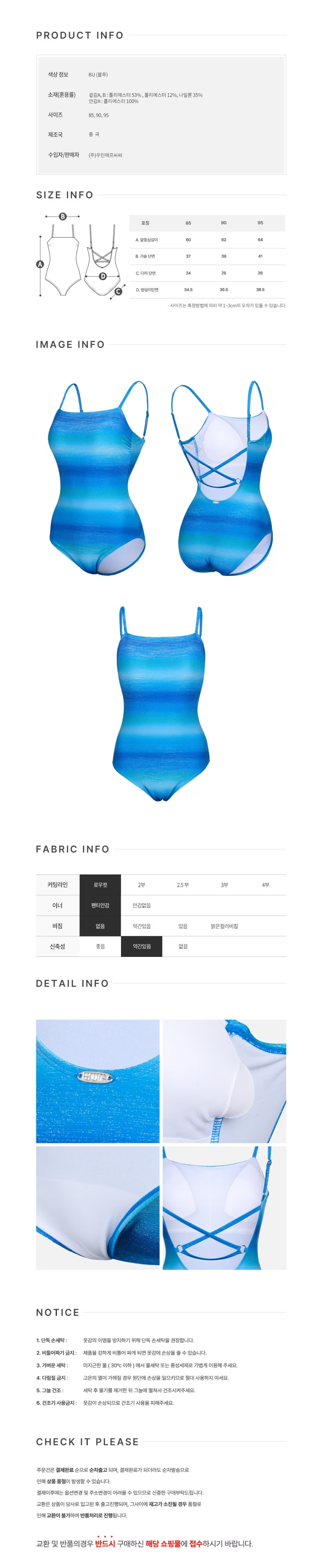 (신세계하남점)비치백 지퍼백 폴리백 증정여성 그라데이션 U백 원피스수영복 블루 LS2F315-BU