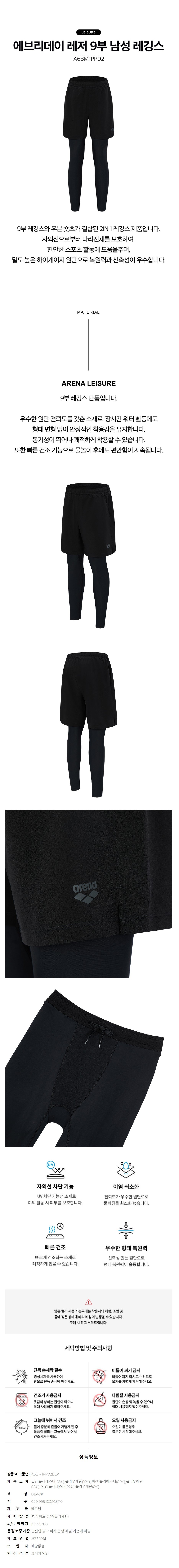 (대구신세계)남성 비치 에브리데이 남성 9부 레깅스 팬츠 수영복(A6BM1PP02)BLK