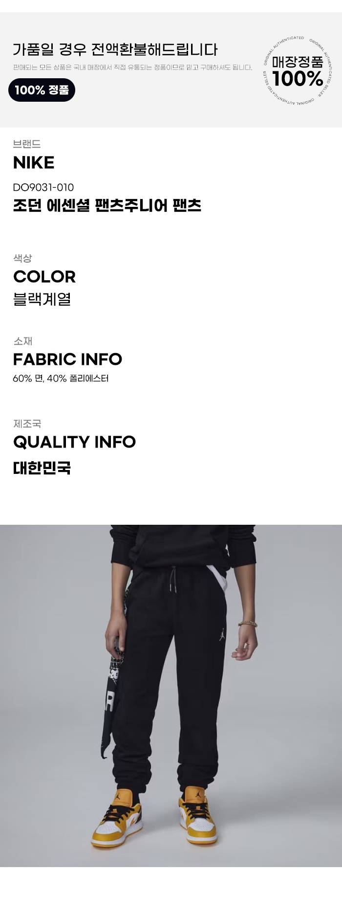 키즈바지 DO9031-010 조던 에센셜 팬츠주니어 팬츠