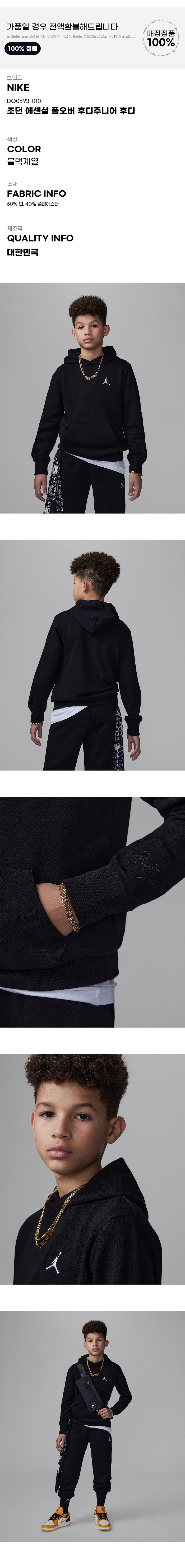 키즈후드티 DQ0593-010 조던 에센셜 풀오버 후디주니어 후디
