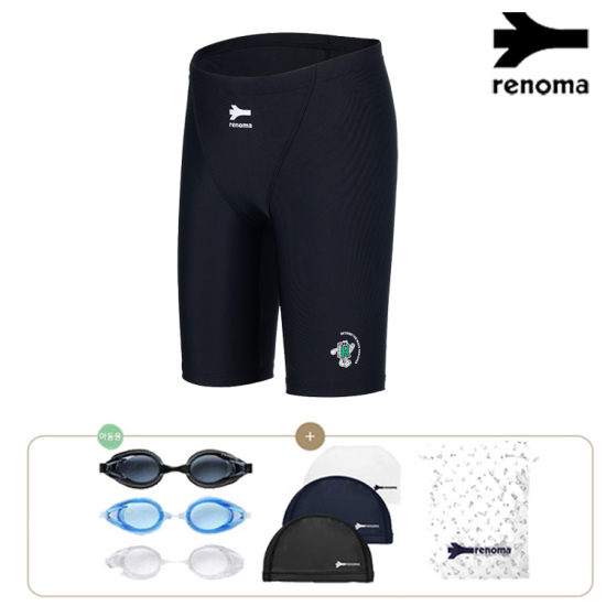 (롯데백화점)남아 R프렌즈 심볼 솔리드 4부 수영복_수경수모세트 BF2F801SET_BK