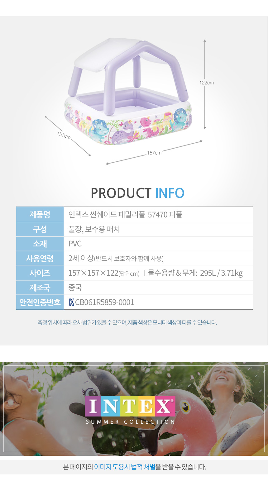 인텍스 썬쉐이드 패밀리풀장 57470 퍼플 풀장 수영장 물놀이 펜션 볼폴장 베란다풀장 야외풀장