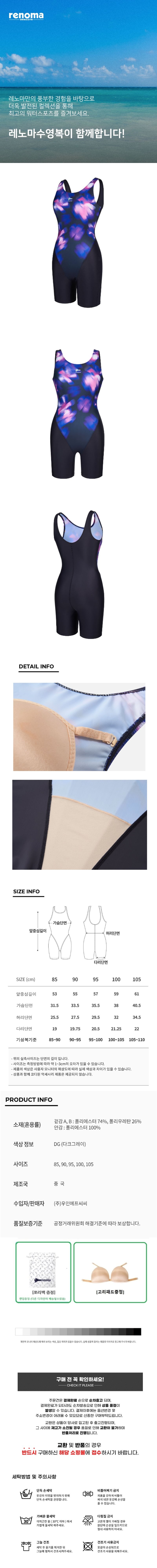 (신세계김해점)끈주머니+브라캡증정 여성 2.5부 워터 빅플라워 반신수영복(U백)/LF2E863-DG