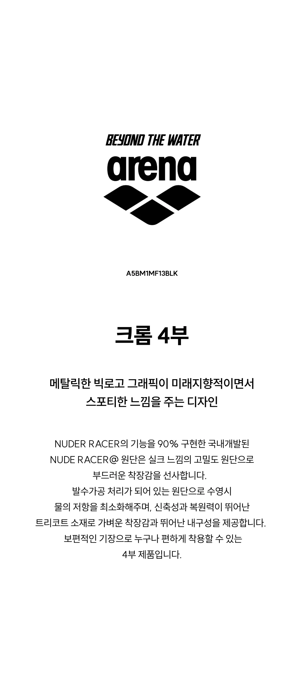 아레나 남성 수영복 크롬 4부 A5BM1MF13 BLK 수영손가방 증정