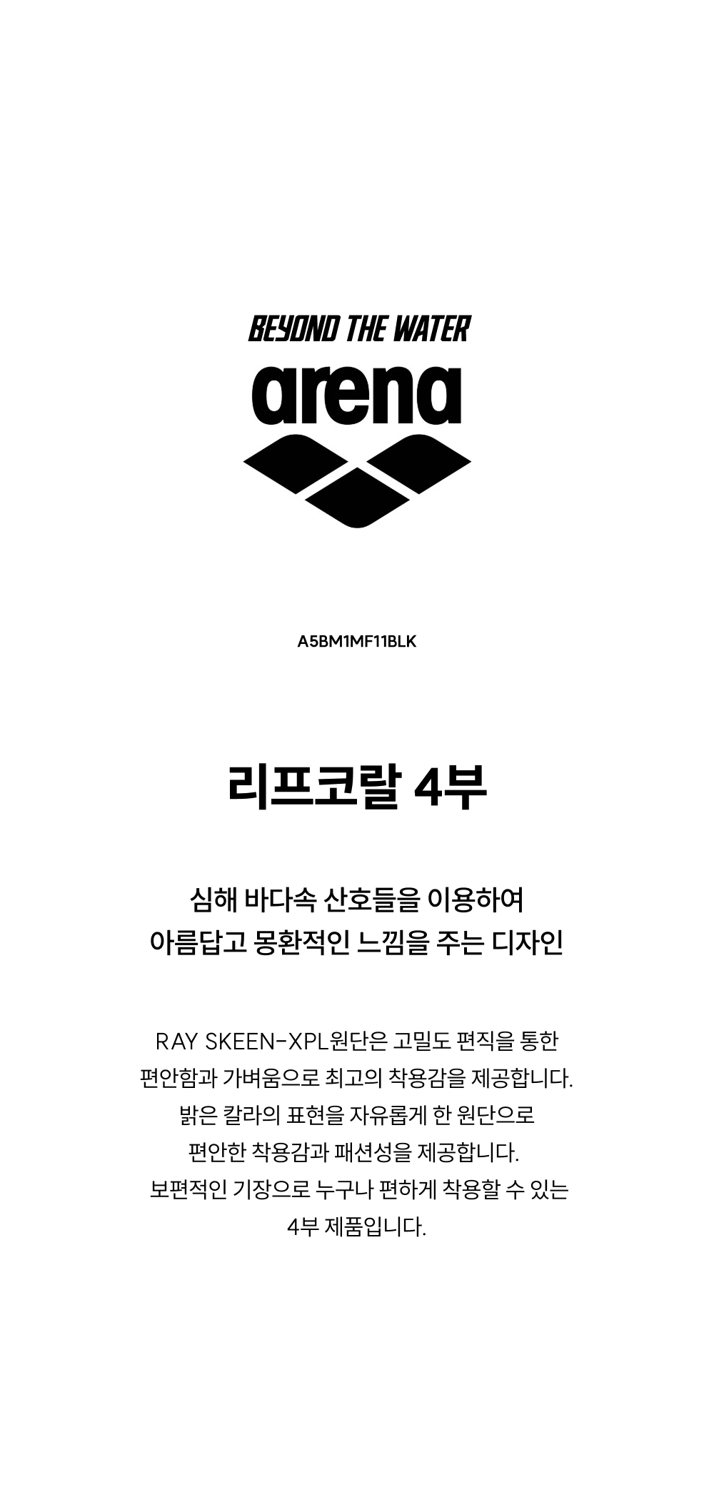 아레나 남성 수영복 리프코랄 4부 A5BM1MF11 BLK 수영손가방 증정