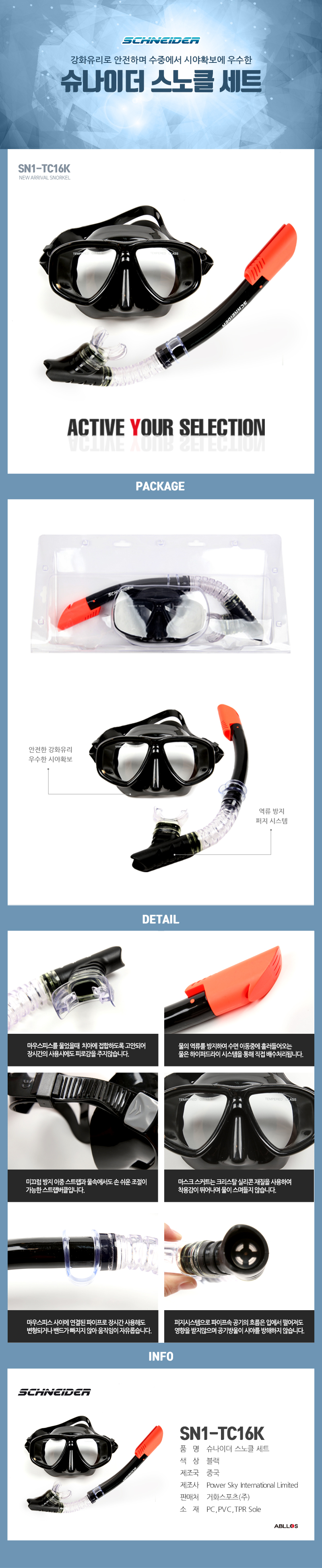 슈나이더 성인용 마스크+스노클세트 SN1-TC16K