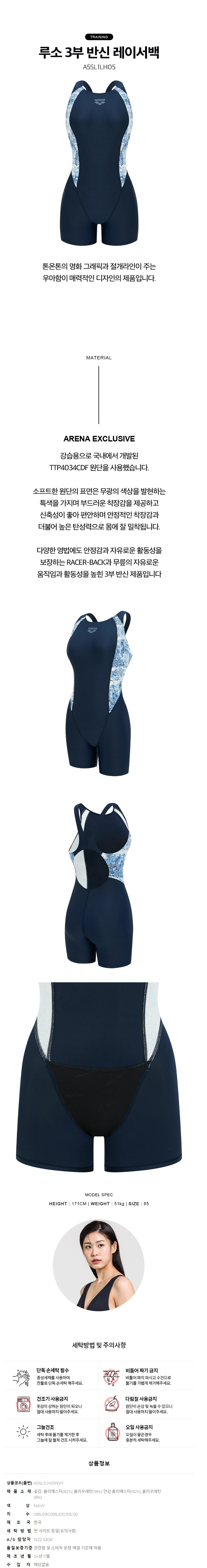 (대구신세계)여성 일반 3부 반신 실내수영복(레이서백)(루소)(A5SL1LH05)NVY(브라캡별도)