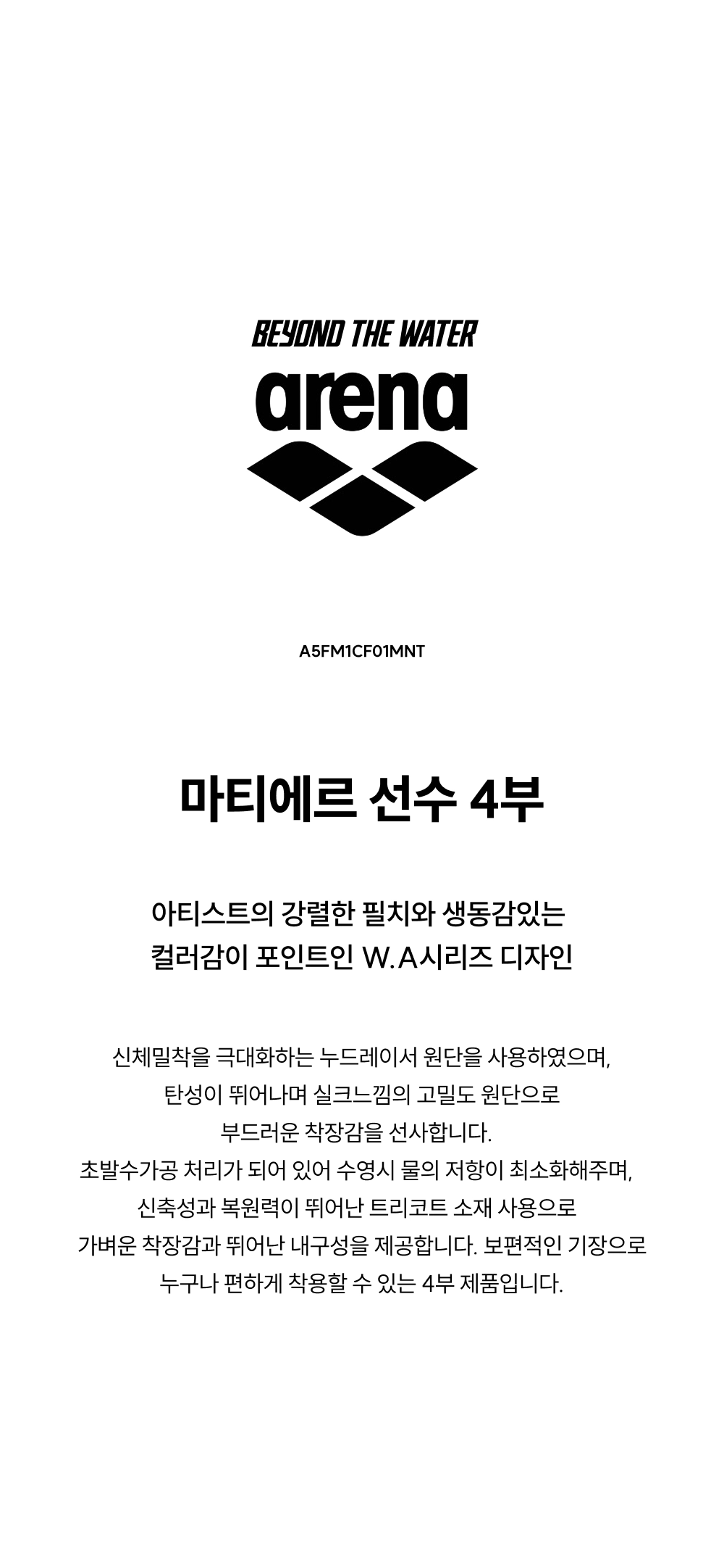 국제수영연맹 아레나 남성 수영복 마티에르 선수 4부 A5FM1CF01 MNT 수영손가방 증정