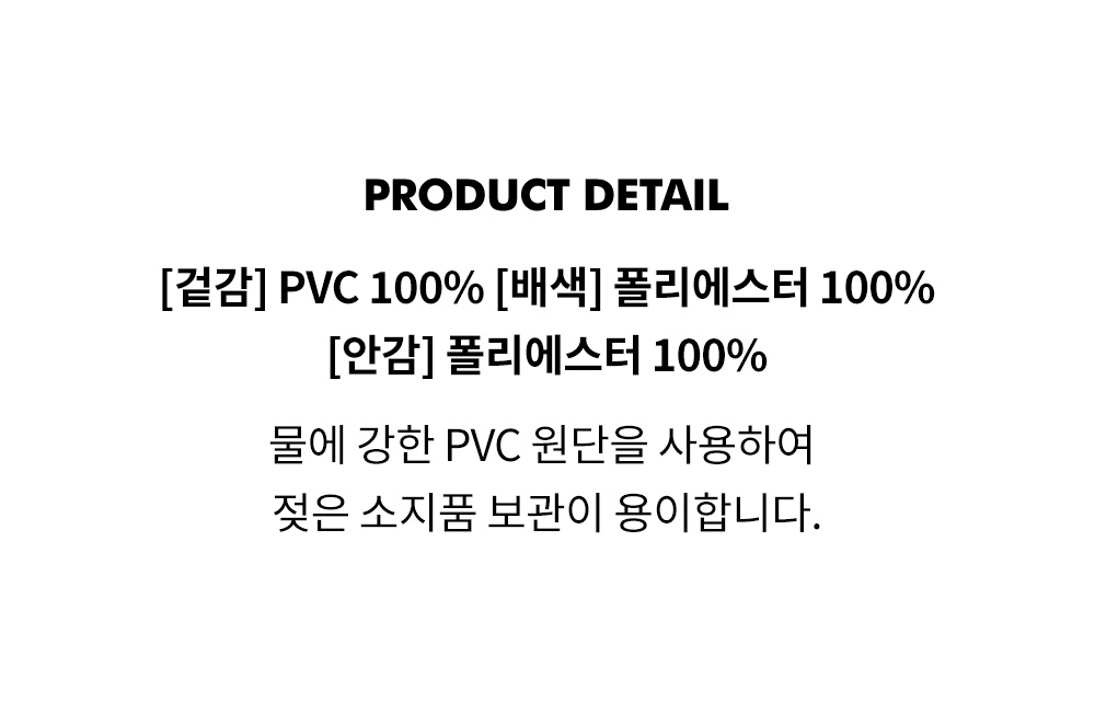 [겉감] PVC 100%, [배색] 폴리에스터 100%, [안감] 폴리에스터 100%