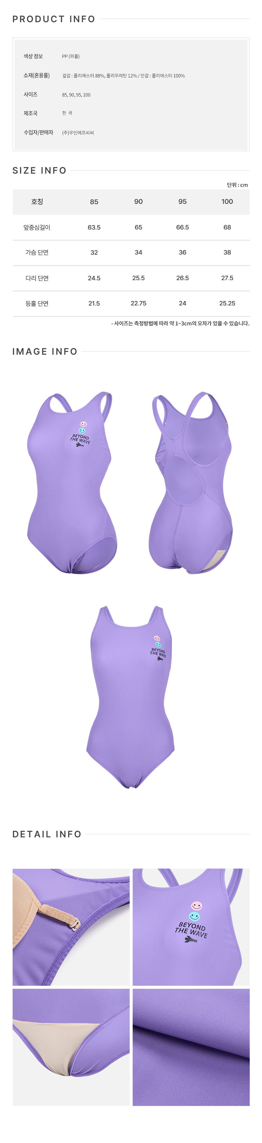 (신세계하남점)지퍼백 폴리백 브라캡 3종 무상증정 여성 스마일리 원피스수영복 퍼플 RN-LS2F201-PP