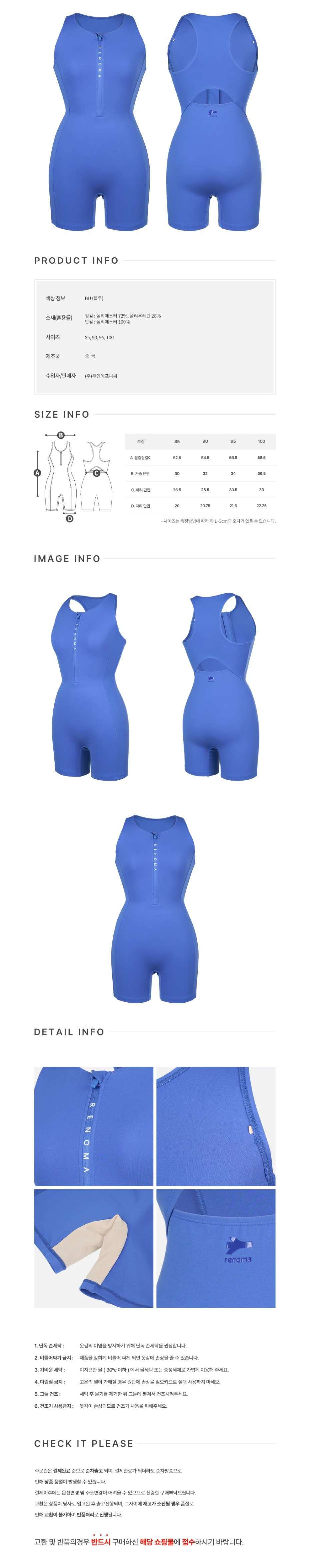 (신세계하남점)지퍼백 폴리백 브라캡 사은품 증정 여성 백트임 포인트지퍼 3부 반신수영복 블루RN-LF...