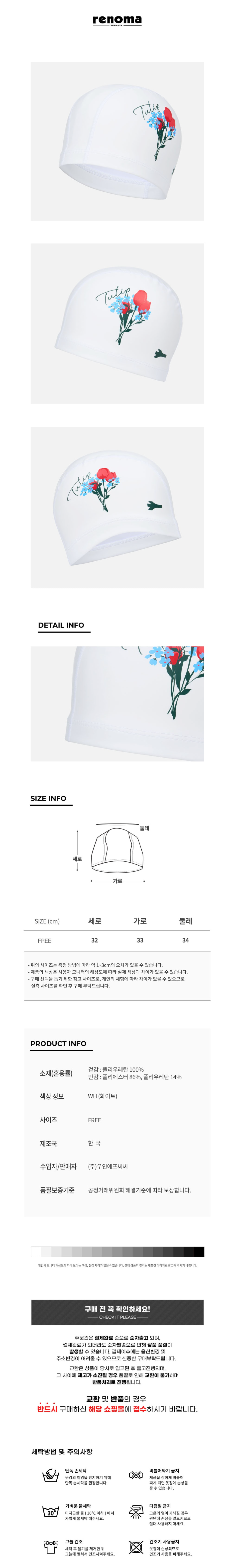 (신세계하남점)지퍼백 폴리백 2종 무상증정 성인 튤립 PU 수모 화이트 RO-RC2E015-WH