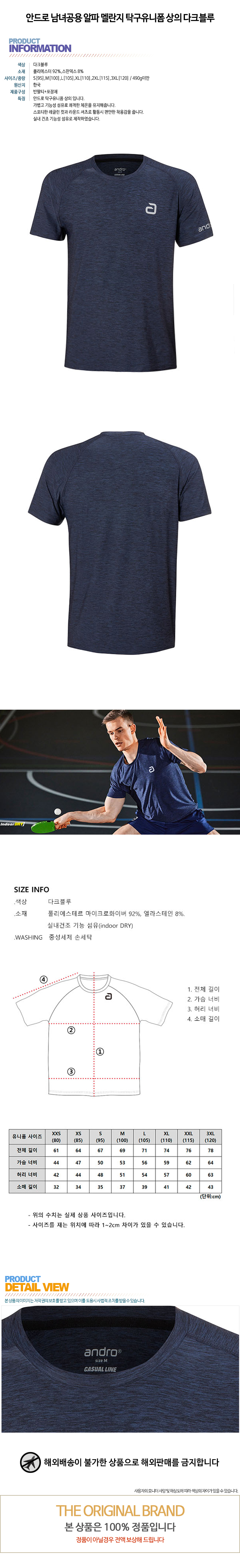 남녀공용 알파 멜란지 탁구유니폼 상의_ 다크블루